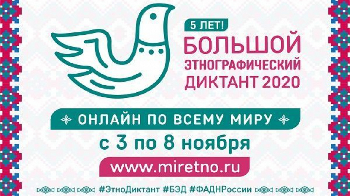 С 3 по 8 ноября 2020 года пройдёт Международная просветительская акция "Большой этнографический диктант". В этом году диктант будет проведён в онлайн-формате.